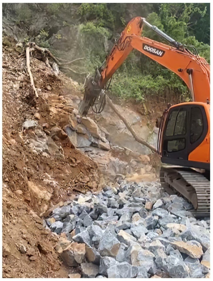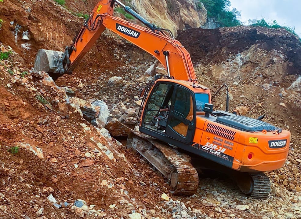225 minera con martillo hidráulico.